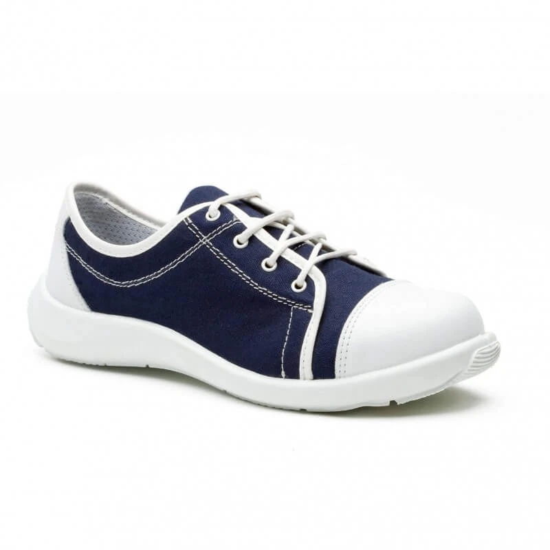 Véritable tennis de sécurité légère et élégante Loane marine pour printemps/été. Tige cuir verpelle blanc / toile marine