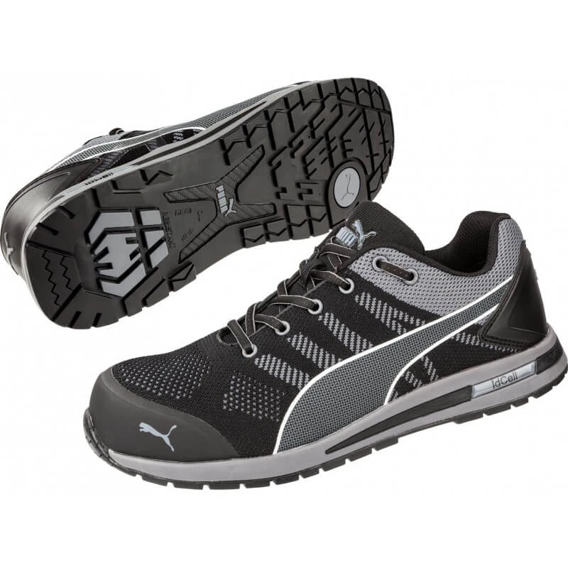 Tige : Textile SAFETY KNIT tissé sans coutures. Chaussure de sécurité normes EN 20345 S1P SRC HRO Semelle : Semelle d’usure en caoutchouc URBAN avec IdCell et point de rotation, résistance à la chaleur par contact 300 °C et antidérapante, semelle intermédiaire en EVA afin d’assurer un amorti optimal et d’améliorer le déroulement du pied. Embout de protection en fibre de verre plus léger que les embouts acier traditionnels, amagnétique, avec isolation thermique et résistant à un choc de 200J et semelle anti-perforation souple FAP. Plus : Sur embout de protection TPU sans métal, ESD. Semelle anti-dérapante haute performance : SRC Coloris : Noir Pointure du 39 au 47 Chaussure de sécurité Elevate knit low de marque Puma Safety Shoes