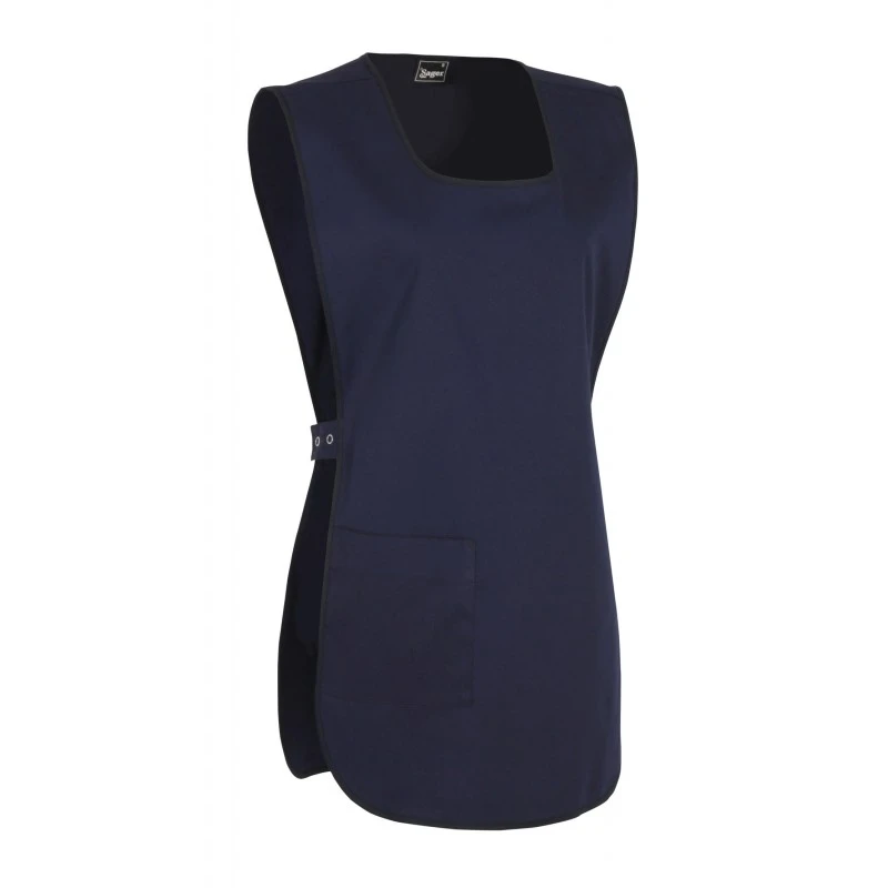 Un chasuble de travail pour femme, simple, pratique de couleur bleu marine idéale pour protéger vos vêtements lors de vos activités professionnelles de réstaurations, services, ménages, hôtelleries,industrie…
