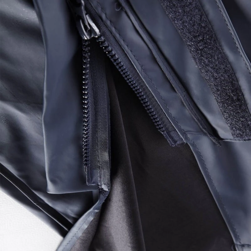 Combinaison de protection contre la pluie Ork Imperméable et résistante au vent idéale pour l’agriculture ou le batiment lors des nettoyages de chantier au karcher. La combinaison a une ouverture / fermeture avec deux double zip jusqu’en bas pour faciliter le port de la tenue.Le sous rabat est à bande auto-agrippante. La capuche est enroulée dans le col avec 2 pressions et un cordon de serrage pour ajuster à votre tête La taille de la combinaison de pluie est élastiquée dans le dos pour un meilleur confort dans vos mouvements.