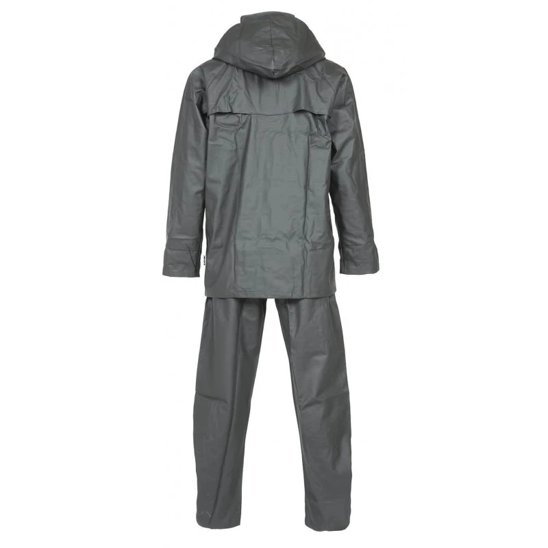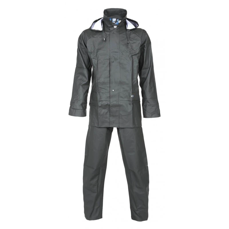 La veste de pluie : Capuche intégrée dans le col de la tenue de pluie Double rabat sur fermeture éclair Dos ventilé 2 poches devant Poignets élastiquées Le pantalon de pluie: Taille élastiquée pour plus de confort à votre pantalon de travail Pression de resserage à la cheville pour protéger vos bas de jambes de la pluie 2 poches passe mains Taille du S au 4XL Coloris : Vert Olive Composition : 50% PU 50% PVC intérieur 100% polyamide Tenue de pluie veste + pantalon Guppy de la collection vêtements de pluie de marque North Ways