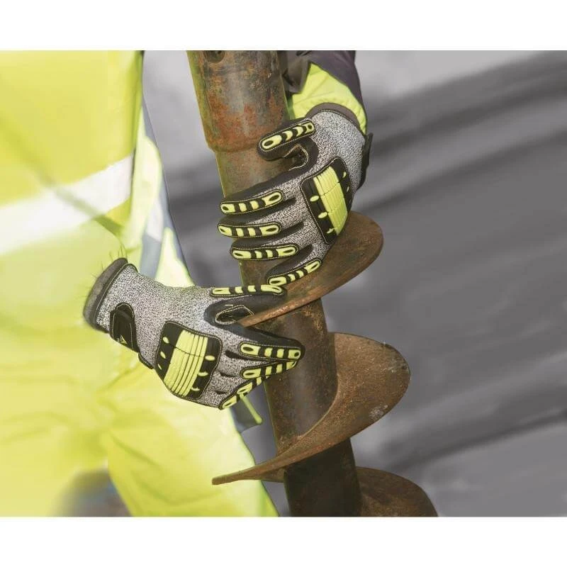 Ce gant a une protection accrue contre les impacts et les pincements, il dispose d’une manchette de 8cm avec fermeture auto-agrippante, et d’une protection contre l’impact en zone métacarpe.