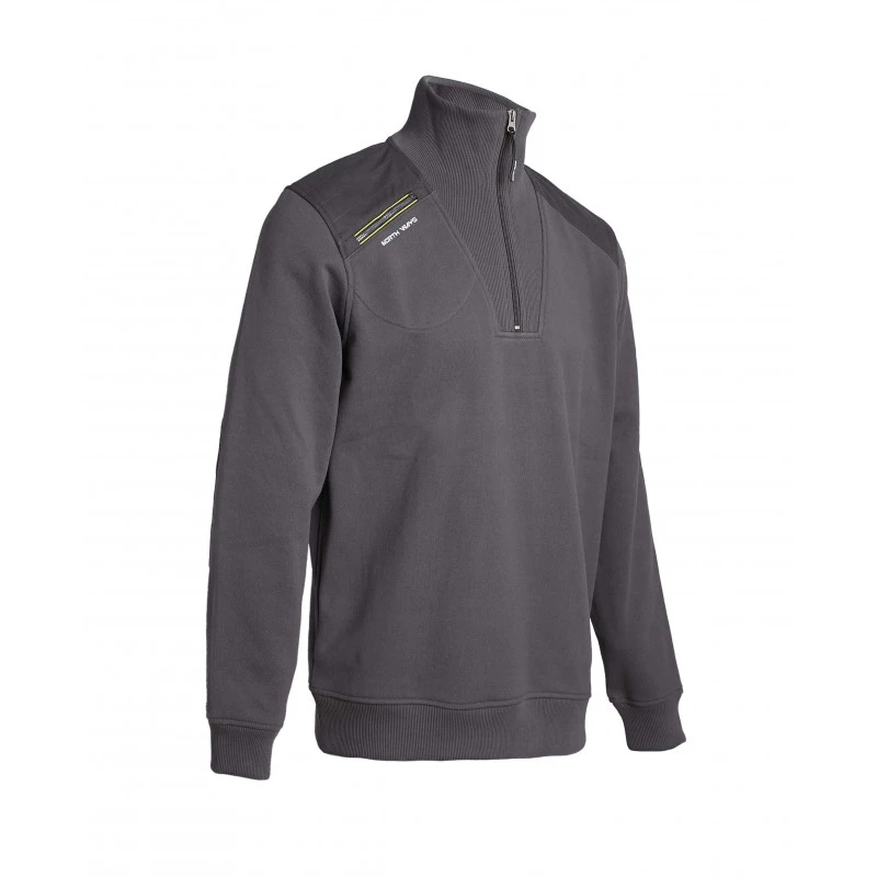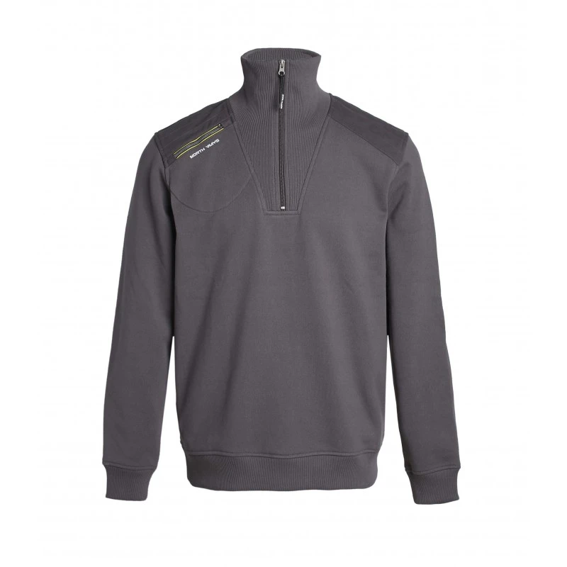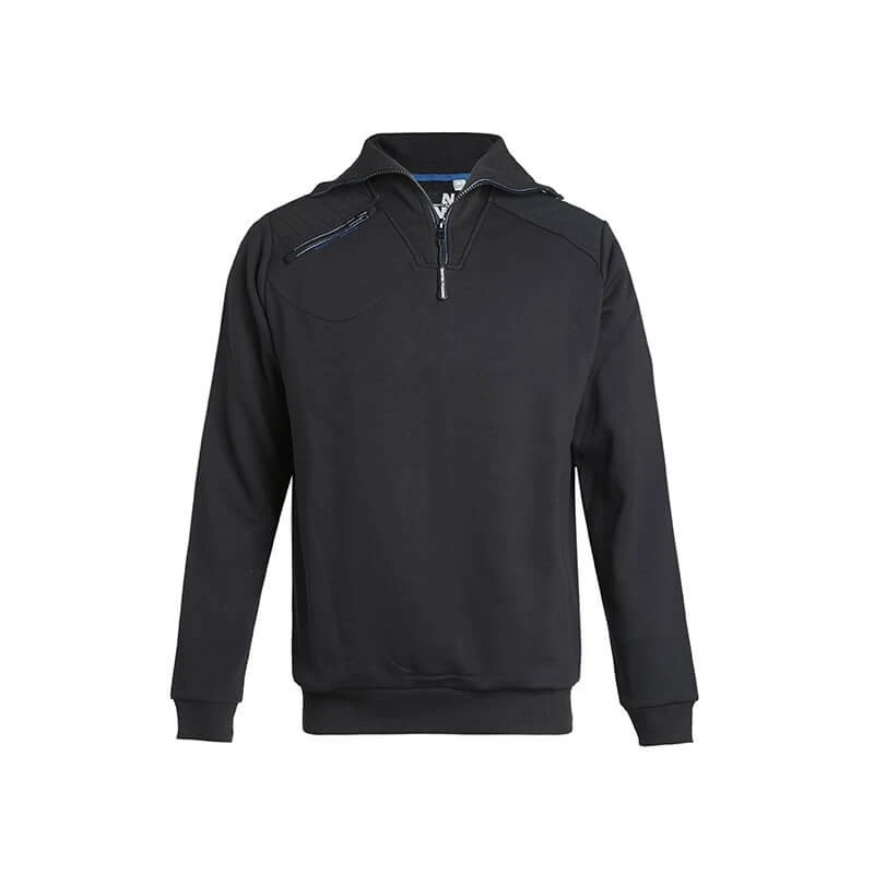 Renforts canvas aux épaules et coudes pour plus de résistante à l’usure. Finition bord de côtes 2×2 100% polyamide 1 poche zippée 2 poches repose mains Coloris : Gris ou noir Taille du S au 4XL Composition : Maille envers gratté 100% polyester 350g/m² canvas 65% coton 35% polyester 200g/m² Bord de côtes 2×2 en 100% polyamide Pull de travail chaud et résistant Largo de la collection vetement de travail NW