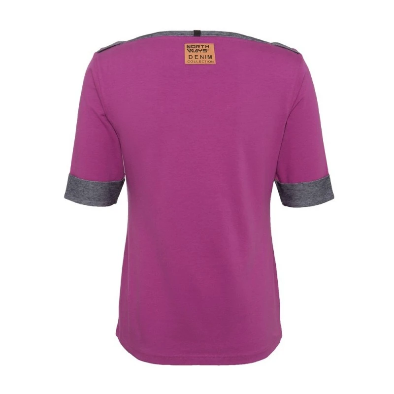 Tee shirt manches courtes avec empiècement en denim jogg Encolure bateau Taille du XS au XXXL Coloris : Fushia Composition : 96% Coton 4% Elasthanne 160g/m² Tee shirt de travail femme Marine de la gamme vêtements de travail femme NW