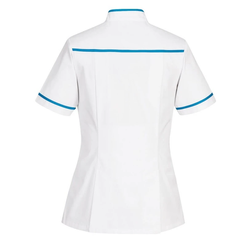 Vous allez apprécier le confort de cette tunique médicale pour femme en tissu extensible bidirectionnel pour améliorer les mouvements et vous donner un confort accru, cette tunique femme manches courtes a une fermeture à pressions et 4 poches pour le rangement, une poche ciseaux cachée, boucle en D pour les clefs ou les badges, soufflet d’aisance pour plus de liberté de mouvement.