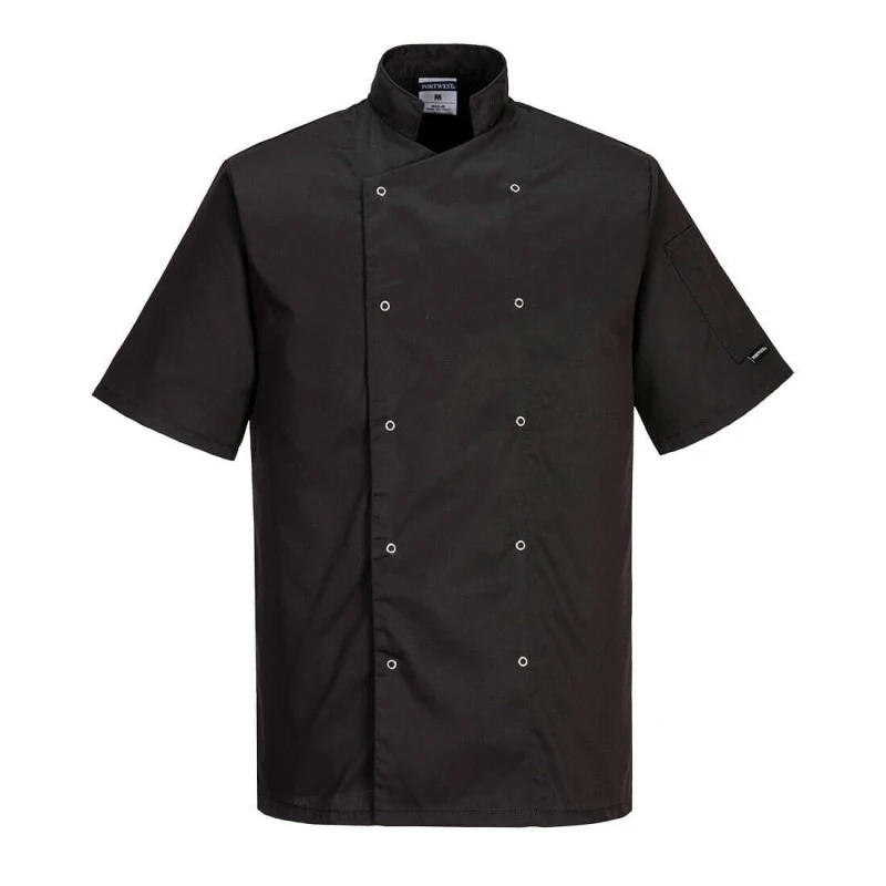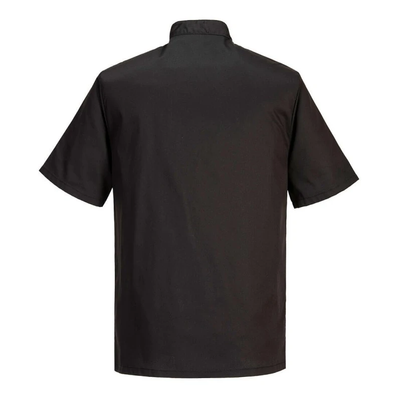 La veste parfaite pour travailler dans la cuisine d’un restaurant elle dispose d’un col Mao d’une poche sur la manche, design unisexe pour un fonctionnement multi-usage, anneau pression sur le devant pour une ouverture facile, tissu sergé résistant